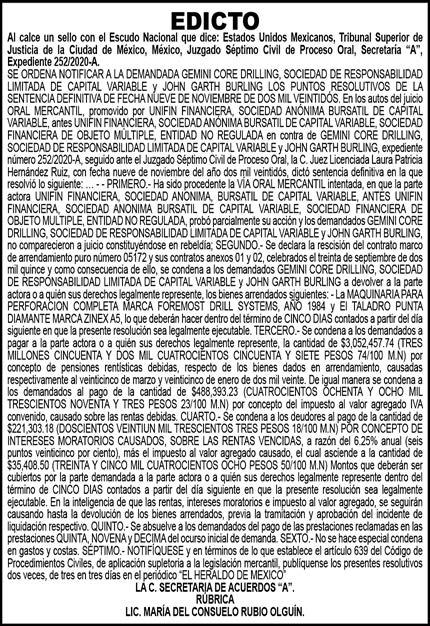 responsable: Alfredo González Castro. Número de Certificado de Reserva otorgado por el Instituto Nacional del Derecho de Autor 04-2009060419022100-101. Número de Certificado de Licitud de título y Contenido No.16921. Domicilio de la Publicación: Paseo de la Reforma No. 250, Piso 24, Colonia Juárez, Del. Cuauhtémoc, C.P. 06600, Ciudad de México. Impreso en Talleres de La Crónica Diaria S.A. de C. V. Calzada Azcapotzalco La Villa No. 160 Barrio San Marcos Alcaldia Azcapotzalco, CP 02020 Publicación Diaria. Todos los derechos están reservados.
