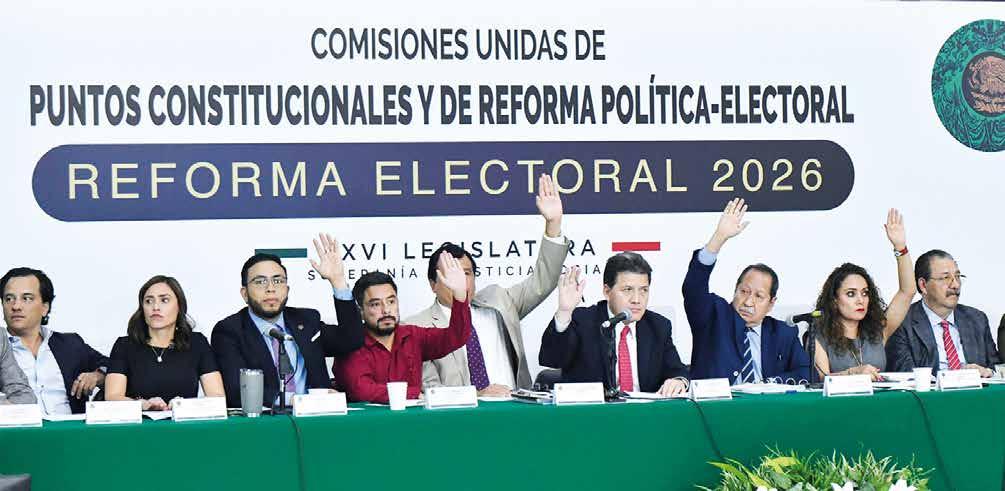 ese a los votos en contra del PT y el Verde Ecologista, avanzó el dictamen de reforma electoral de la presidenta Claudia Sheinbaum en Comisiones Unidas de Puntos Constitucionales y de Reforma Político-Electoral de la Cámara de Diputados