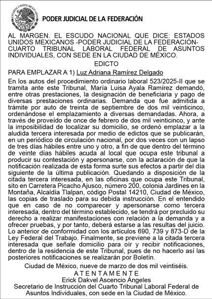 DIARIA (lunes a domingo) de Circulación Pagada y Controlada, editada y publicada por OPERADORA Y ADMINISTRADORA DE INFORMACIÓN Y EDITORIAL SA de CV, Avenida Insurgentes Sur 1271, Piso 2, Oficina 202, Colonia Extremadura Insurgentes, Alcaldía Benito Juárez, CP 03740. Editor Responsable; ALFREDO GONZÁLEZ CASTRO Reserva de Derechos al Uso Exclusivo: 04-2009-060419022100-101 Certificado de Licitud de Titulo y Contenido: 16,921 Actualización del Registro en el Padrón Nacional de Medios Impresos de la Secretaría de Gobernación: 2 de octubre de 2024. Impreso por: LA CRÓNICA DIARIA, SA DE CV Avenida Azcapotzalco La Villa 180, Colonia San Marcos, Alcaldía Azcapotzalco, Ciudad