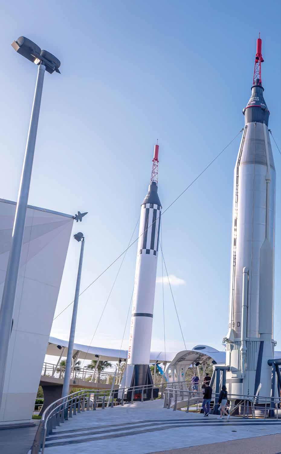 Ubicado en la costa oriental del centro de Florida, el Centro Espacial Kennedy ha sido el escenario de múltiples lanzamientos históricos, incluidas las misiones Apolo y vuelos del transbordador espacial. El centro de visitantes cuenta con exhibiciones interactivas, salas de proyección y ofrece recorridos guiados por edificios icónicos, como el hangar en donde se ensamblan los vehículos espaciales.