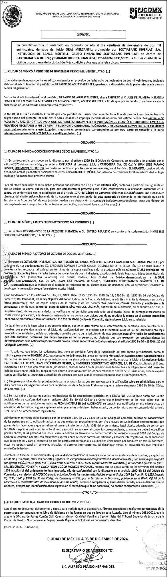 AVANZA JUICIO CONTRA SAMUEL