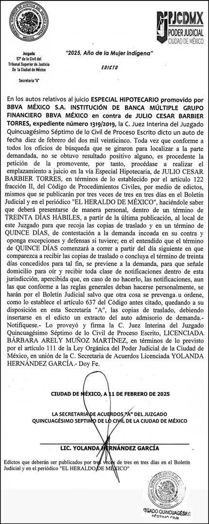 Periódico El Heraldo de México. Editor Responsable: Alfredo González Castro, Número de Certificado de Reserva otorgado por el Instituto Nacional del Derecho de Autor: 04-2009-060419022100-101. Número de Certificado de Licitud de Título y Contenido: 16921. Domicilio de la Publicación: Av. Insurgentes Sur, No. 1271, piso 2, oficina 202, Extremadura Insurgentes, Benito Juárez, C.P. 03740. Impreso en LA CRÓNICA DIARIA, SA DE CV, Avenida Azcapotzalco La Villa 160, Colonia San Marcos, Alcaldía Azcapotzalco, Ciudad de México, CP 02020. Distribuidores: ARREDONDO E HIJOS DISTRIBUIDORA, SA de CV, Iturbide 18 local D, Colonia Centro de la Ciudad de México Área 4, Alcaldía Cuauhtémoc, Ciudad de México, CP 06040. ELIZABETH IVONNE GUTIÉRREZ