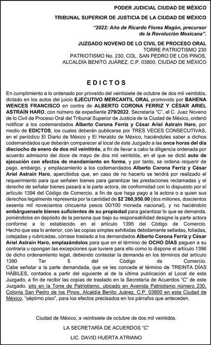 responsable: Alfredo González Castro. Número de Certificado de Reserva otorgado por el Instituto Nacional del Derecho de Autor 04-2009060419022100-101. Número de Certificado de Licitud de título y Contenido No.16921. Domicilio de la Publicación: Paseo de la Reforma No. 250, Piso 24, Colonia Juárez, Del. Cuauhtémoc, C.P. 06600, Ciudad de México. Impreso en Talleres de La Crónica Diaria S.A. de C. V. Calzada Azcapotzalco La Villa No. 160 Barrio San Marcos Alcaldia Azcapotzalco, CP 02020 Publicación Diaria. Todos los derechos están reservados.
