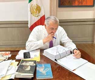 Lo que más llama la atención de la foto de Adán Augusto, es el par de libros que tiene al alcance de la mano y que asoman al frente, en primer plano