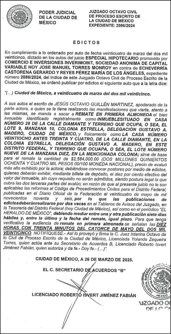 Periódico El Heraldo de México. Editor Responsable: Alfredo González Castro, Número de Certificado de Reserva otorgado por el Instituto Nacional del Derecho de Autor: 04-2009-060419022100-101. Número de Certificado de Licitud de Título y Contenido: 16921. Domicilio de la Publicación: Av. Insurgentes Sur, No. 1271, piso 2, oficina 202, Extremadura Insurgentes, Benito Juárez, C.P. 03740. Impreso en LA CRÓNICA DIARIA, SA DE CV, Avenida Azcapotzalco La Villa 160, Colonia San Marcos, Alcaldía Azcapotzalco, Ciudad de México, CP 02020. Distribuidores: ARREDONDO E HIJOS DISTRIBUIDORA, SA de CV, Iturbide 18 local D, Colonia Centro de la Ciudad de México Área 4, Alcaldía Cuauhtémoc, Ciudad de México, CP 06040. ELIZABETH IVONNE GUTIÉRREZ ORTIZ, Callejón 2o de la Luz 52, Departamento 4, Interior 1, Colonia Anáhuac II Sección, Alcaldía Miguel Hidalgo, Ciudad de México, CP 11320. AEROVÍAS EMPRESA DE CARGO, SA de CV, Paseo de la Reforma 445, Piso 9, Colonia Cuauhtémoc, alcaldía Cuauhtémoc, Ciudad de México, CP 06000 Publicación Diaria No.2875, miércoles 30