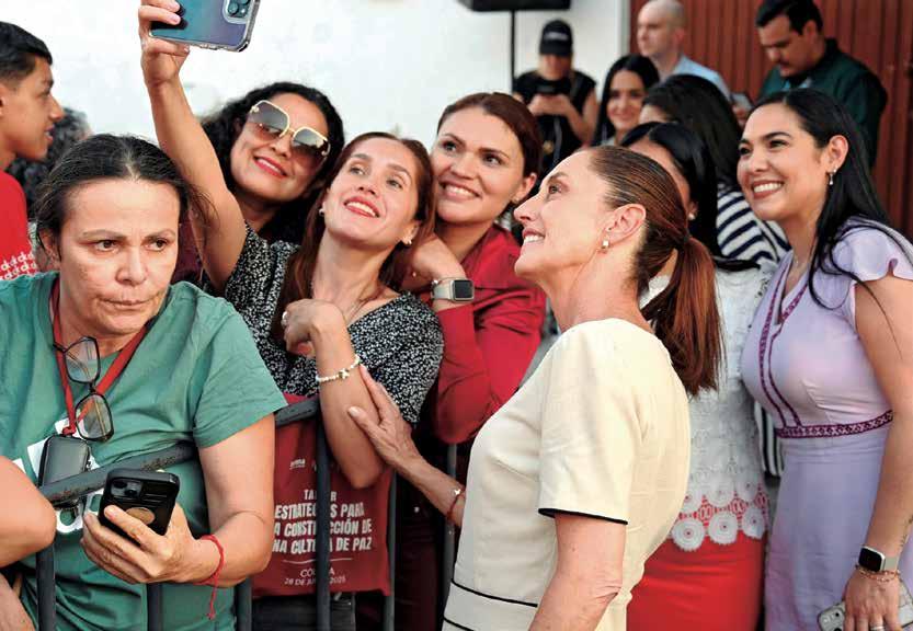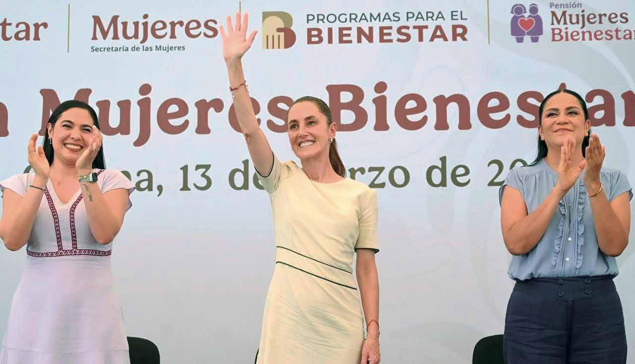 LAl finalizar la ceremonia de entrega de Pensión Mujeres Bienestar, en Tecomán, Colima, Sheinbaum dijo que con Estados Unidos hay colaboración respetando la independencia de cada país.