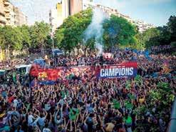 ● Luego de coronarse matemáticamente en el torneo local, los futbolistas del FC Barcelona festejaron con más de 700 mil fans, en un autobús que partió del Nou Camp con destino al Arco del Triunfo. REDACCIÓN
