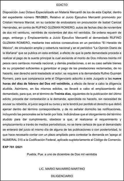 responsable: Alfredo González Castro. Número de Certificado de Reserva otorgado por el Instituto Nacional del Derecho de Autor 04-2009-060419022100-101. Número de Certificado de Licitud de título y Contenido No.16921. Domicilio de la Publicación: Paseo de la Reforma No. 250, Piso 24, Colonia Juárez, Del. Cuauhtémoc, C.P. 06600, Ciudad de México. Imprenta: Impreso en Talleres de La Crónica Diaria , S.A. de C. V. Calzada Azcapotzalco La Villa No. 160 Barrio San Marcos , Alcaldia Azcapotzalco, CP 02020. Publicación Diaria. Todos los derechos están reservados. Queda estrictamente prohibida la reproducción total o parcial de los contenidos e imágenes de esta publicación sin previa autorización de El Heraldo de México. El contenido de los artículos es responsabilidad exclusiva de los autores.
