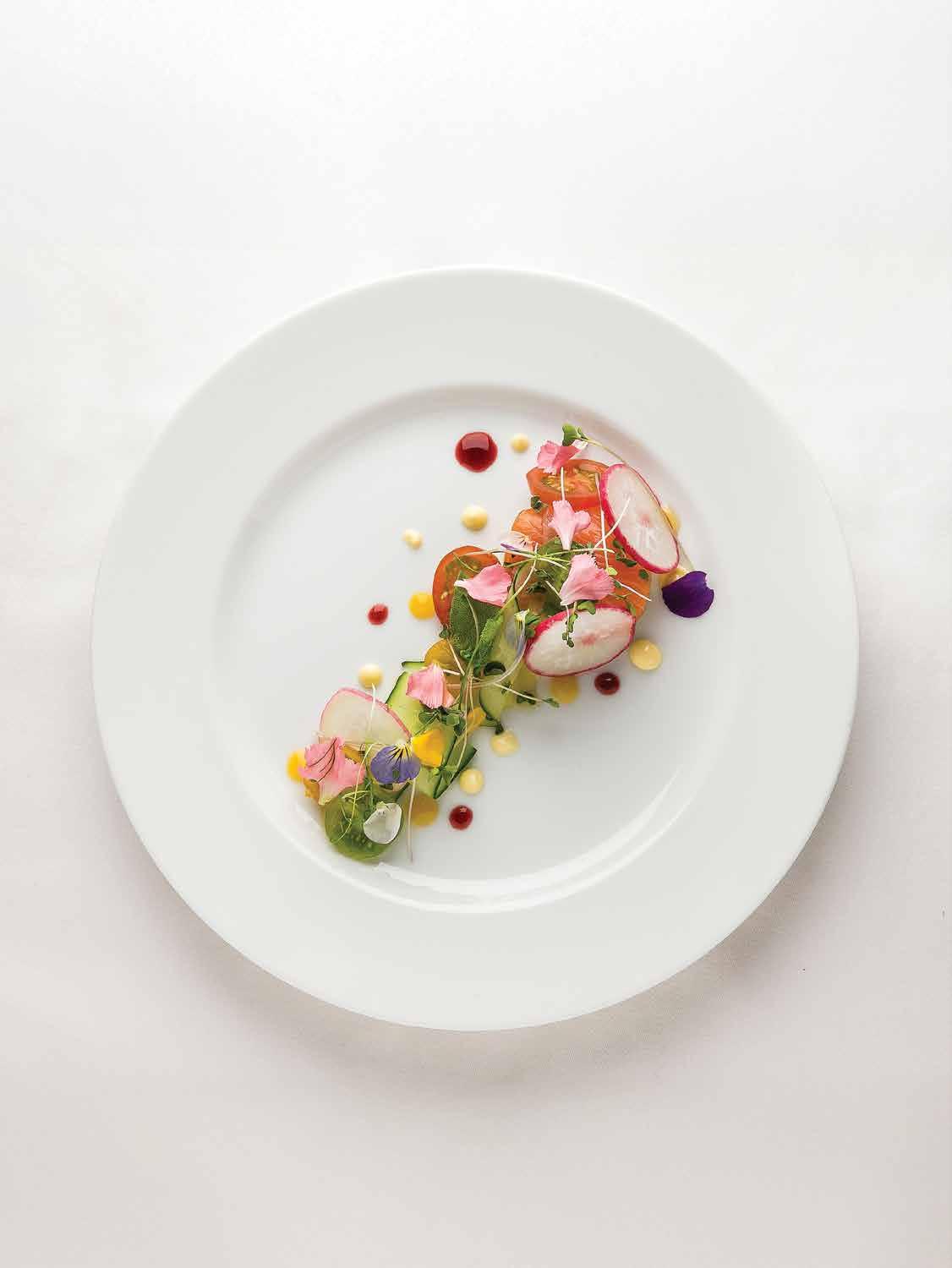 del tiempo. “Hemos perdido varios alimentos de la era prehispánica, que hemos intentado recuperar”, cuenta Alfredo. “Por ejemplo, el nopal de cruceta ( tetragonus). Lo salvamos del olvido y ya lo podemos ofrecer en nuestro catálogo”. Variedad, por cierto, que acompaña muy bien a la clásica cos tilla de cerdo, o el caserísimo nopal con huevo. “Desde que comenza mos hemos tratado de recuperar e innovar”, continúa. “Sabemos que México está a la vanguardia de la gastronomía, y si un chef viene con una idea propositiva, lo acompaña mos en todo el camino”.