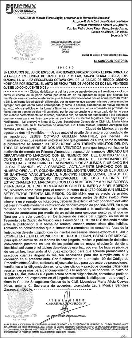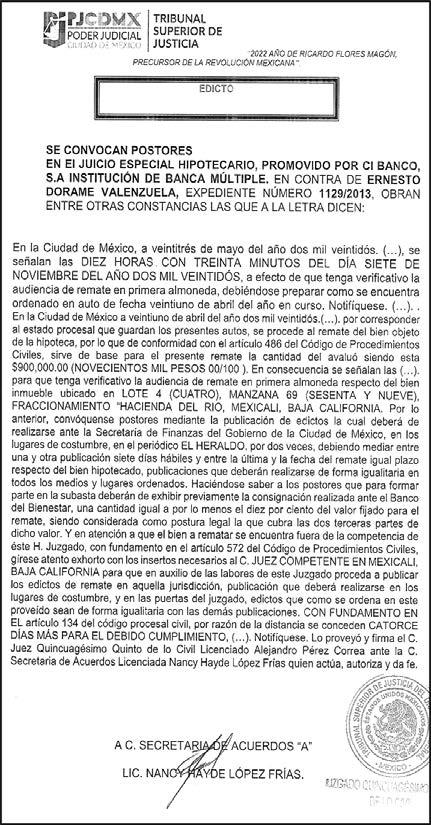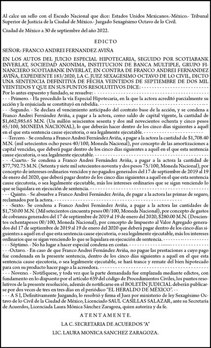 Diario El Heraldo de México. Editor responsable: Alfredo González Castro. Número de Certificado de Reserva otorgado por el Instituto Nacional del Derecho de Autor 04-2009-060419022100-101. Número de Certificado de Licitud de título y Contenido No.16921. Domicilio de la Publicación: Paseo de la Reforma No. 250, Piso 24, Colonia Juárez, Del. Cuauhtémoc, C.P. 06600, Ciudad de México. Imprenta: Impresora de Periódicos Diarios, S. de R.L. de C.V., con domicilio en Acalotenco No. 80, Colonia Barrio Santo Tomás, Azcapotzalco, Ciudad de México, C.P 02040. Publicación Diaria. Todos los derechos están reservados. Queda estrictamente prohibida la reproducción total o parcial de los contenidos e imágenes de esta publicación sin previa autorización de El Heraldo de México. El contenido de los artículos es responsabilidad exclusiva de los autores.