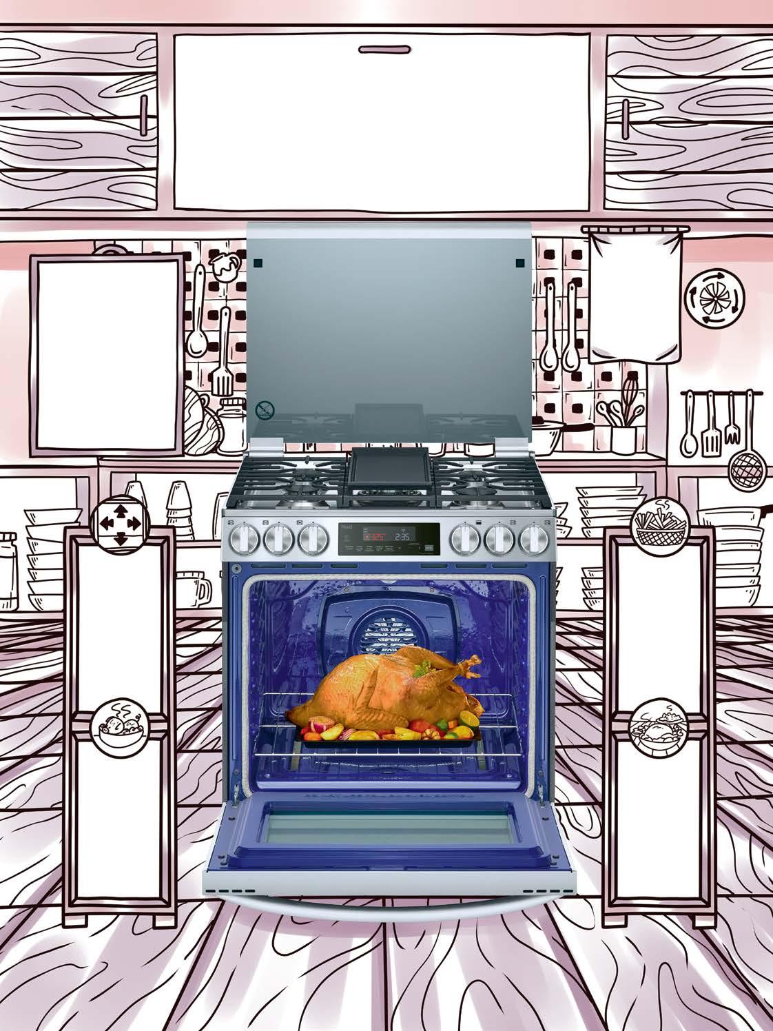 Las estufas LG InstaView™ tienen gran capacidad, ideales para hacer enormes piernas, pollos enteros o lechones, entre otras delicias.