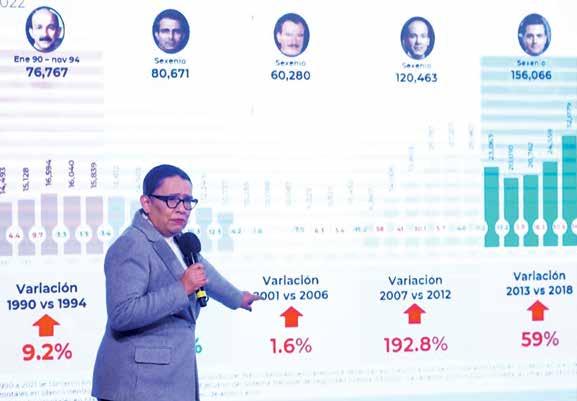 “De enero a septiembre de 2022 se logró disminución de menos 8.1 por ciento respecto al mismo periodo de 2021, de menos 11.2 respecto a 2020, menos 10.3 por ciento respecto a 2019 y 7.6 por ciento respec to a 2018”, señaló en la gráfica.
