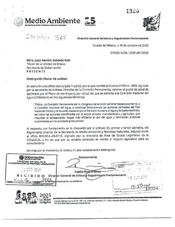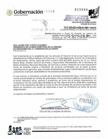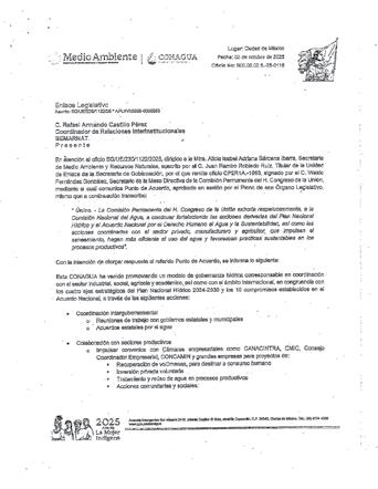 El oficio detalla el impulso a la suscripción de Acuerdos Estatales a través de Organismos de Cuenca y Direcciones Locales, por ejemplo, con Morelos firmado el 21 de enero, y Campeche, el 23 de junio.
