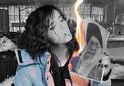 l Como protesta, las iraníes queman fotografías del ayatolá Ali Jamenei, líder supremo de Irán.