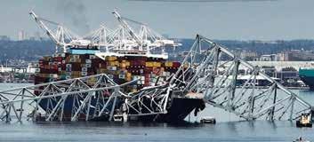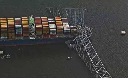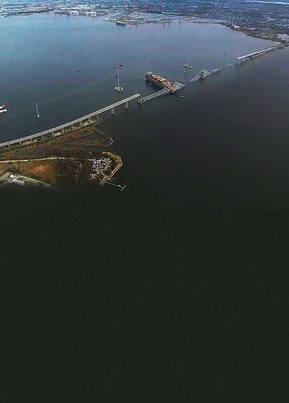 dores se estrelló contra un pilar del puente, haciendo que gran parte de la estructura de acero cayera al río Patapsco.