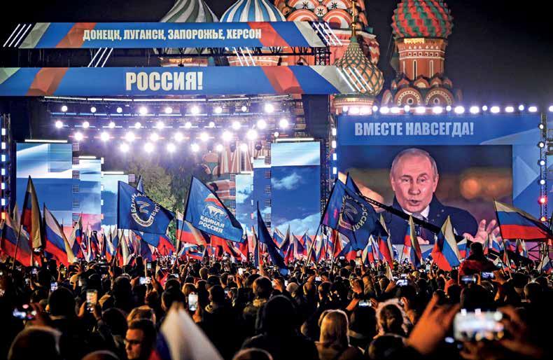 #APAGONESEl presidente ruso, Vladimir Putin, firmó ayer en el Kremlin la anexión de cua tro regiones de Ucrania (un 15% del territorio de ese país) controladas por su ejército y prometió a los rusos la "victoria" tras siete meses de ofensiva militar en el país.