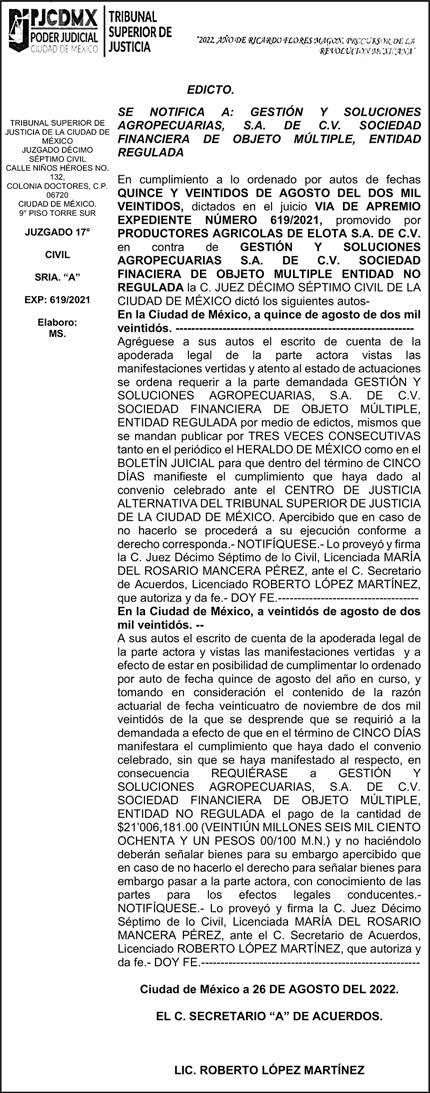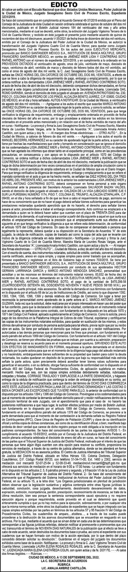Diario El Heraldo de México. Editor responsable: Alfredo González Castro. Número de Certificado de Reserva otorgado por el Instituto Nacional del Derecho de Autor 04-2009-060419022100-101. Número de Certificado de Licitud de título y Contenido No.16921. Domicilio de la Publicación: Paseo de la Reforma No. 250, Piso 24, Colonia Juárez, Del. Cuauhtémoc, C.P. 06600, Ciudad de México. Imprenta: Impresora de Periódicos Diarios, S. de R.L. de C.V., con domicilio en Acalotenco No. 80, Colonia Barrio Santo Tomás, Azcapotzalco, Ciudad de México, C.P 02040. Publicación Diaria. Todos los derechos están reservados. Queda estrictamente prohibida la reproducción total o parcial de los contenidos e imágenes de esta publicación sin previa autorización de El Heraldo de México. El contenido de los artículos es responsabilidad exclusiva de los autores.