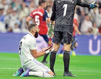 Real Madrid dejó escapar sus primeros puntos en la tem porada 2022-23 en La Liga de España y, de paso, cedió el liderato de la competencia al Barcelona, al empatar como local 1-1 con el Osasuna..
