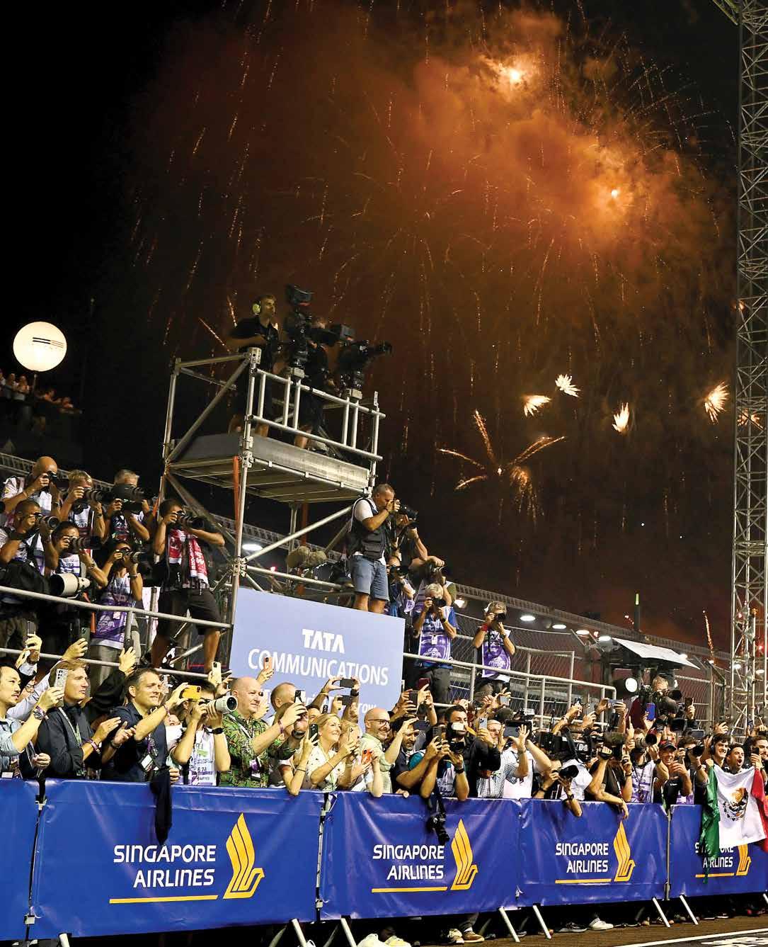 En una jornada condicionada por la lluvia, los accidentes y las banderas amarillas, Checo Pérez lideró 59 vueltas en el circuito callejero de Marina Bay. Dominio absoluto en una carrera decidida por tiempo, como también suce dió en Mónaco, donde también consiguió la victoria.