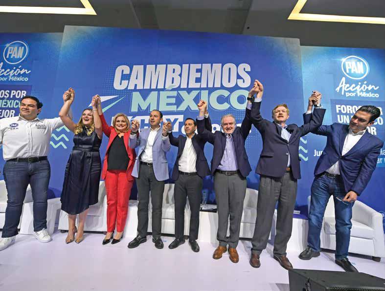 En el World Trade Center de la Ciudad de México, la dirigencia nacional panista reunió a líderes, militantes y empresarios en el foro Cambiemos México, sí hay de otra, donde además de calificarse como la más grande oposición del país y manifestar que hay un gobierno federal fallido, también placeó a algunos de sus presidenciables: los gobernadores de Chihuahua, Maru Campos, y de Yucatán, Mau ricio Vila, así como el presidente de la Mesa Directiva de la Cámara de Diputados, Santiago Creel y el di putado Juan Carlos Romero Hicks.
