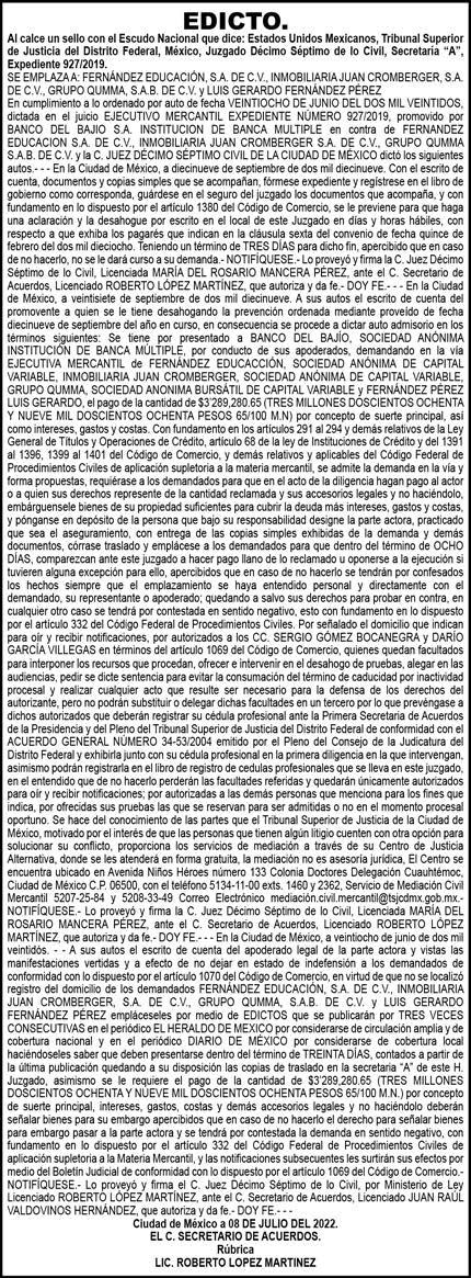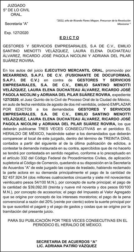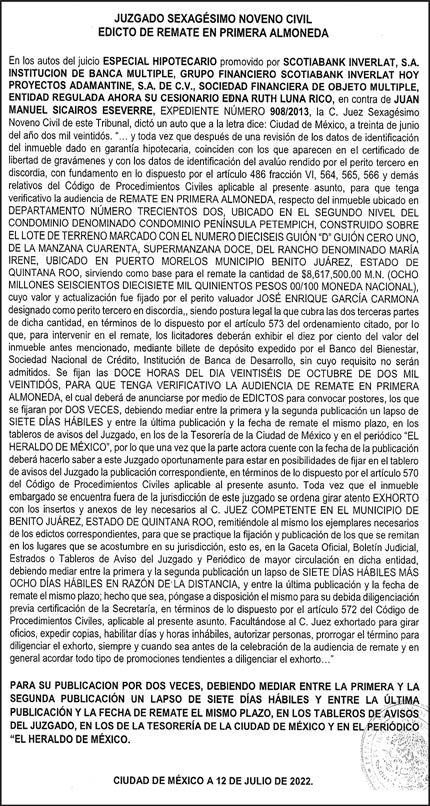 Diario El Heraldo de México. Editor responsable: Alfredo González Castro. Número de Certificado de Reserva otorga do por el Instituto Nacional del Derecho de Autor 04-2009-060419022100-101. Número de Certificado de Licitud de título y Contenido No.16921. Domicilio de la Publicación: Paseo de la Reforma No. 250, Piso 24, Colonia Juárez, Del. Cu auhtémoc, C.P. 06600, Ciudad de Méx ico. Imprenta: Impresora de Periódicos Diarios, S. de R.L. de C.V., con domicilio en Acalotenco No. 80, Colonia Barrio Santo Tomás, Azcapotzalco, Ciudad de México, C.P 02040. Publicación Diaria. Todos los derechos están reservados. Queda estrictamente prohibida la reproducción total o parcial de los contenidos e imágenes de esta publicación sin previa autorización de El Heraldo de México. El contenido