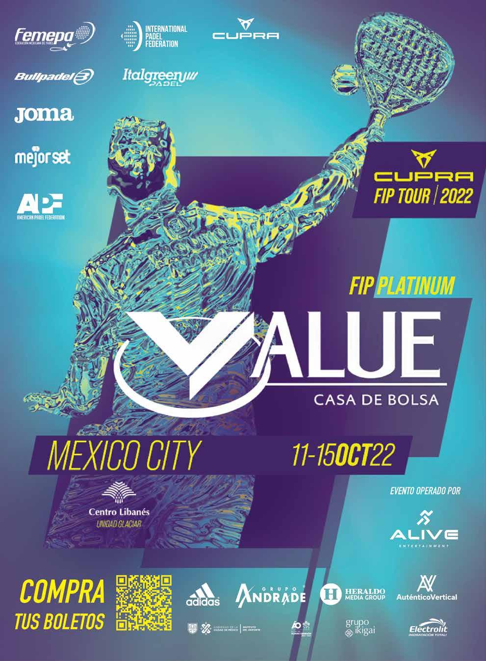 El FIP Pádel Va lue c uenta con la calidad en la organización de Alive Entertain ment, empresa con más de 10 años en la reali zación de eventos deportivos , como L ´ Etape México y Fórmula 1 Paddock Club, así como los propietarios de la f ilial de Pumas Tabasco. Bajo el nombre de FIP Platinum Value llega a la CDMX