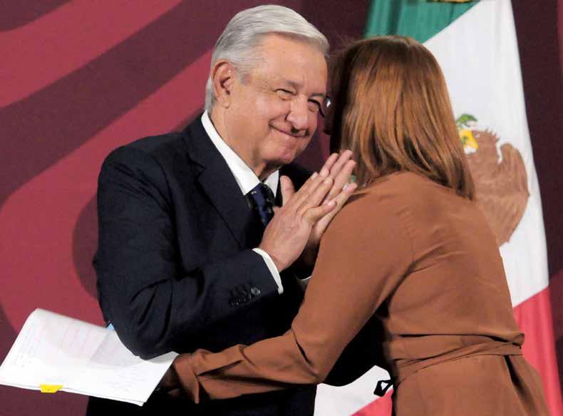 Fue el presidente Andrés Ma nuel López Obrador quien lo anun ció en la mañanera aclarando que se le insistió que permaneciera en su puesto. En el salón Tesorería, la que fuera su coordinadora de campaña presidencial, con la voz quebrada leyó su carta de renuncia argumentando motivos persona les y porque en el juego “uno debe saber cuándo retirarse”.