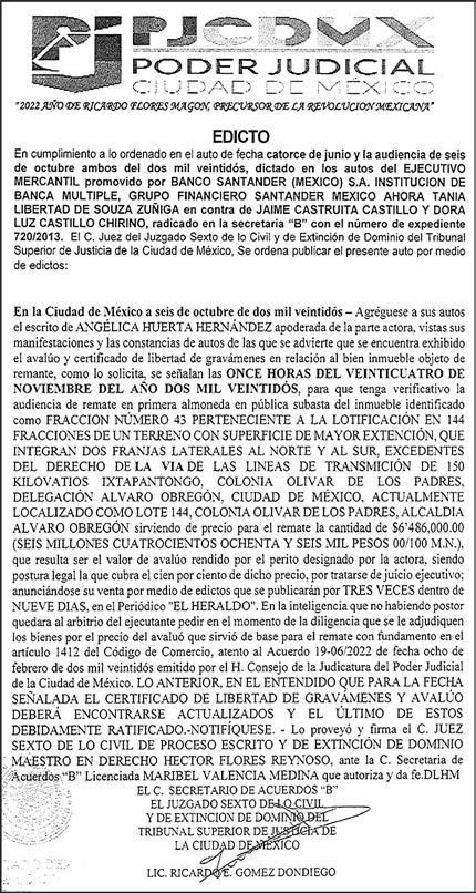 responsable: Alfredo González Castro. Número de Certificado de Reserva otorgado por el Instituto Nacional del Derecho de Autor 04-2009060419022100-101. Número de Certificado de Licitud de título y Contenido No.16921. Domicilio de la Publicación: Paseo de la Reforma No. 250, Piso 24, Colonia Juárez, Del. Cuauhtémoc, C.P. 06600, Ciudad de México. Impreso en Talleres de La Crónica Diaria S.A. de C. V. Calzada Azcapotzalco La Villa No. 160 Barrio San Marcos Alcaldia Azcapotzalco, CP 02020 Publicación Diaria. Todos los derechos están reservados. Queda estrictamente prohibida la reproducción total o parcial de los contenidos e imágenes de esta publicación sin previa autorización de El Heraldo de México. El contenido de los artículos es responsabilidad exclusiva de los autores.