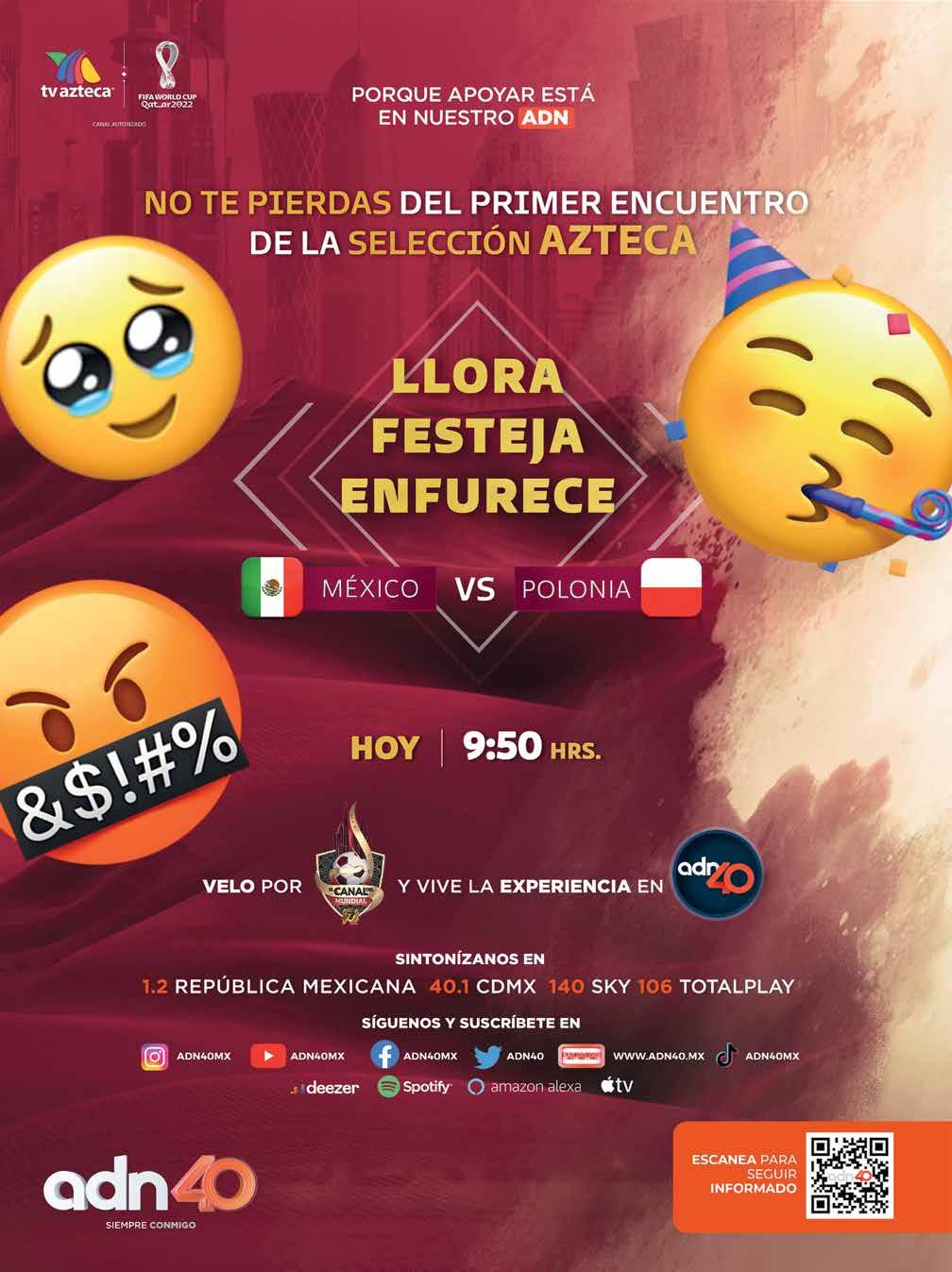 “Comenzar ganando (ante Polonia) es importante, pero todos los partidos son trascen dentales. Si minimizamos a cual quiera de los rivales del grupo, nos puede costar. No debemos confiarnos”, mencionó Fernando Quirarte, exseleccionado nacio nal en 1986, en entrevista para El Heraldo de México.