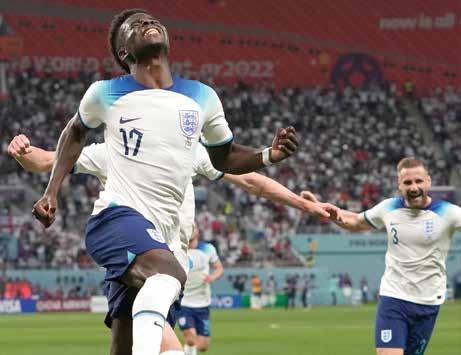 Inglaterra presentó su candi datura al título del Mundial, al debutar ayer con una goleada de escándalo (6-2) ante Irán, en el Estadio Internacional Khalifa, con la nueva gene ración de jóvenes talentosos que dirige Gareth Southgate. Jude Bellingham (19 años) marcó al 35’, y Bukayo Saka (21) hizo doblete al 43’ y 62’, para encaminar el triunfo eu ropeo, a lo que se sumaron los tantos de Raheem Sterling (45+1’), Marcus Rashford (71’) y Jack Grealish (90’).