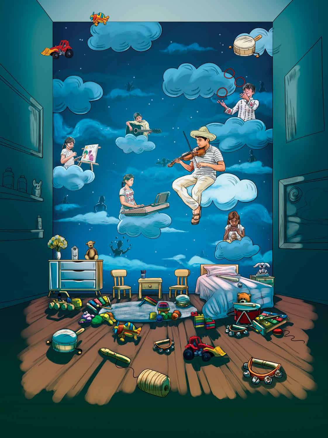 Dichas temáticas guiarán Tengo un sueño, que sucederá el 24 de noviembre en el Auditorio Nacio nal. Participan 2 mil 100 niñas, niños y jóvenes que fueron elegidos por sus propios compañeros para representarlos. Además de su actuación, realizaron la imagen del evento, elaboran la escenografía El fandango de los pixeles, los visuales que acompaña rán a cada obra y participan en caravanas de cosecha audiovisual de los procesos comunitarios y artísticos.