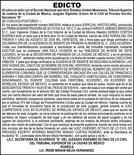 responsable: Alfredo González Castro. Número de Certificado de Reserva otorgado por el Instituto Nacional del Derecho de Autor 04-2009-060419022100-101. Número de Certificado de Licitud de título y Contenido No.16921. Domicilio de la Publicación: Paseo de la Reforma No. 250, Piso 24, Colonia Juárez, Del. Cuauhtémoc, C.P. 06600, Ciudad de México. Imprenta: Impreso en Talleres de La Crónica Diaria , S.A. de C. V. Calzada Azcapotzalco La Villa No. 160 , Barrio San Marcos Alcaldia Azcapotzalco, CP 02020. Publicación Diaria. Todos los derechos están reservados. Queda estrictamente prohibida la reproducción total o parcial de los contenidos e imágenes de esta publicación sin previa autorización de El Heraldo de México. El contenido de los artículos es responsabilidad exclusiva de los autores.