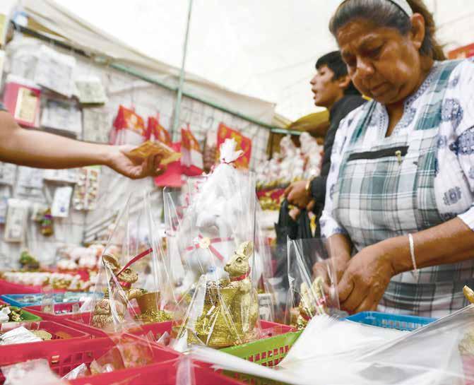 l En el Mercado de Sonora, lo má s vendido en esta época son cosas para atraer la prosperidad, salud y amor. Los borreguitos para la abundancia, y los calzones de colores, continúan liderando el mercado; su precio oscila entre 20 y hasta 150 pesos. C. STETTIN