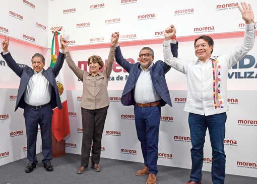 › Listo quedó el llamado triunvirato de Morena para la elección del Estado de México. Delfina Gómez fue ungida ayer como la precandidata única del partido para la gubernatura del estado. A su vez, ella nombró a Horacio Duarte como coordinador de precampaña y a Higinio Martínez como delegado especial. Su campaña en forma arranca el 14 de enero, en Toluca, y un día después van a un magno mitin en Nezahualcóyotl.