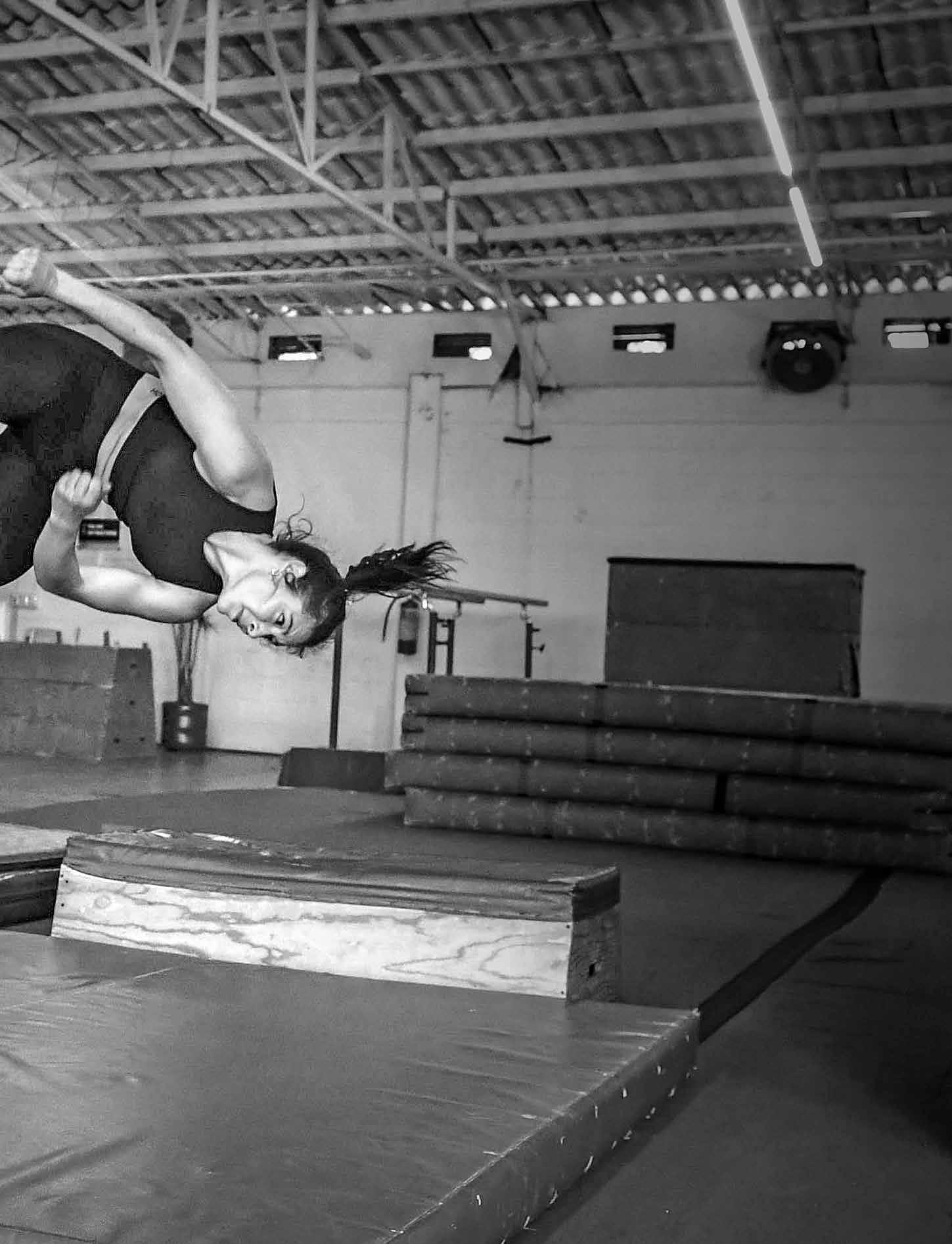 A los 13 años tomó la decisión de dejar la gimnasia y más tarde se convirtió en doble de acción. Ahí la invitaron a entrenar parkour como una herramienta que le ayudaba en su trabajo, siendo la única mujer.
