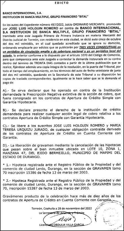 l Bloqueo de cuentas de banco.