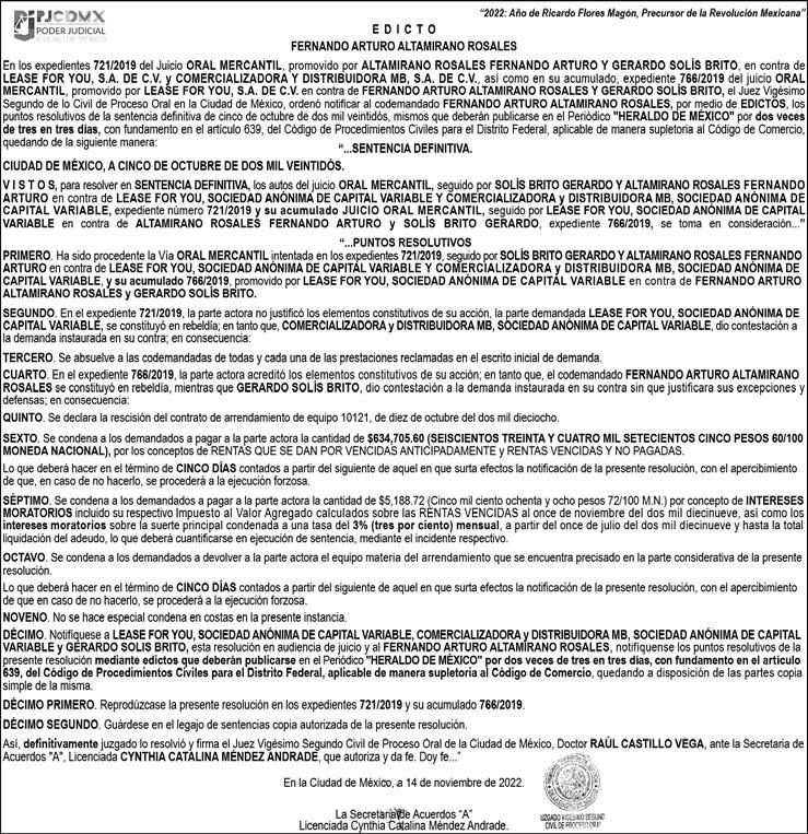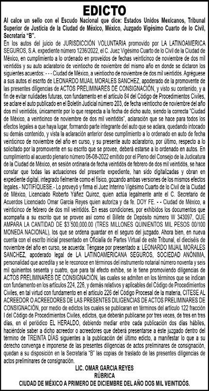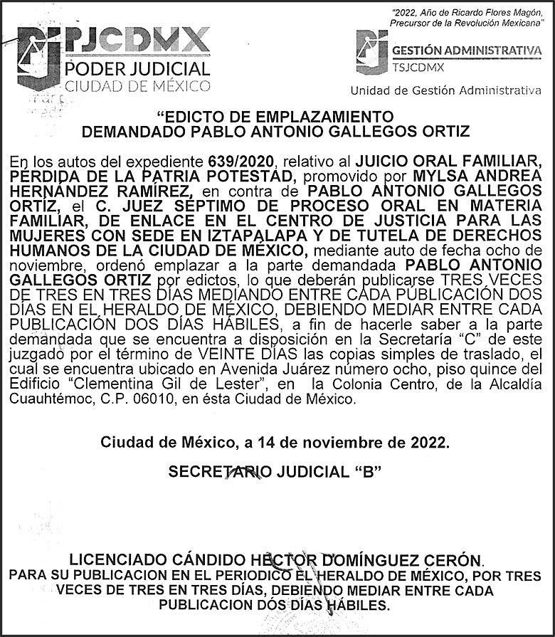 Editor responsable: Alfredo González Castro. Número de Certificado de Reserva otorgado por el Instituto Nacional del Derecho de Autor 04-2009060419022100-101. Número de Certificado de Licitud de título y Contenido No.16921. Domicilio de la Publicación: Paseo de la Reforma No. 250, Piso 24, Colonia Juárez, Del. Cuauhtémoc, C.P. 06600, Ciudad de México. Imprenta: Impreso en Talleres de La Crónica Diaria , S.A. de C. V. Calzada Azcapotzalco La Villa No. 160 , Barrio San Marcos, Alcaldia Azcapotzalco, CP 02020. Publicación Diaria. Todos los derechos están reservados. Queda estrictamente prohibida la reproducción total o parcial de los contenidos e imágenes de esta publicación sin previa autorización de El Heraldo de México. El contenido de los artículos es responsabilidad exclusiva de los autores.
