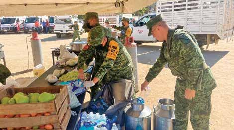 ● ASISTEN. Los elementos militares realizan tareas de alimentación.
