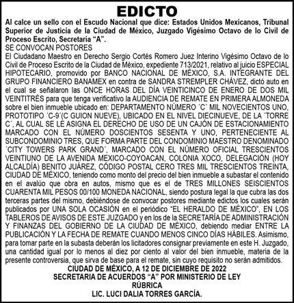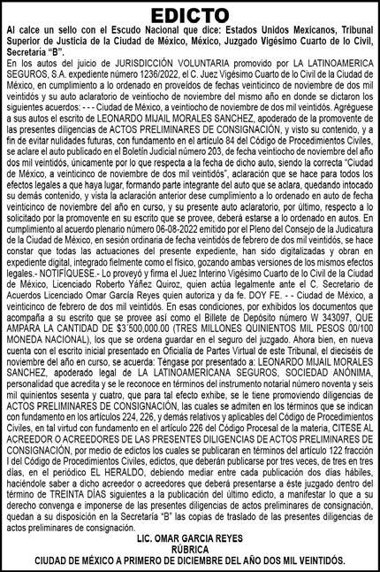 Diario El Heraldo de México. Editor responsable: Alfredo González Castro. Número de Certificado de Reserva otorgado por el Instituto Nacional del Derecho de Autor 04-2009-060419022100-101. Número de Certificado de Licitud de título y Contenido No.16921. Domicilio de la Publicación: Paseo de la Reforma No. 250, Piso 24, Colonia Juárez, Del. Cuauhtémoc, C.P. 06600, Ciudad de México. Impreso en Talleres de La Crónica Diaria S.A. de C. V. Calzada Azcapotzalco La Villa No. 160 Barrio San Marcos , Alcaldia Azcapotzalco, CP 02020. Publicación Diaria. Todos los derechos están reservados. Queda estrictamente prohibida la reproducción total o parcial de los contenidos e imágenes de esta publicación sin previa autorización de El Heraldo de México. El contenido de los artículos es responsabilidad exclusiva de los autores.