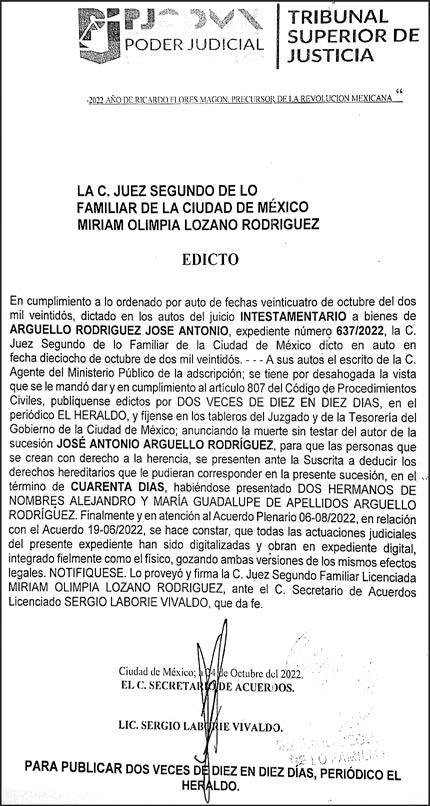 responsable: Alfredo González Castro. Número de Certificado de Reserva otorgado por el Instituto Nacional del Derecho de Autor 04-2009-060419022100-101. Número de Certificado de Licitud de título y Contenido No.16921. Domicilio de la Publicación: Paseo de la Reforma No. 250, Piso 24, Colonia Juárez, Del. Cuauhtémoc, C.P. 06600, Ciudad de México. Imprenta: Impreso en Talleres de La Crónica Diaria , S.A. de C. V. Calzada Azcapotzalco La Villa No. 160 , Barrio San Marcos Alcaldia Azcapotzalco, CP 02020. Publicación Diaria. Todos los derechos están reservados. Queda estrictamente prohibida la reproducción total o parcial de los contenidos e imágenes de esta publicación sin previa autorización de El Heraldo de México. El contenido de los artículos es responsabilidad exclusiva de los autores.