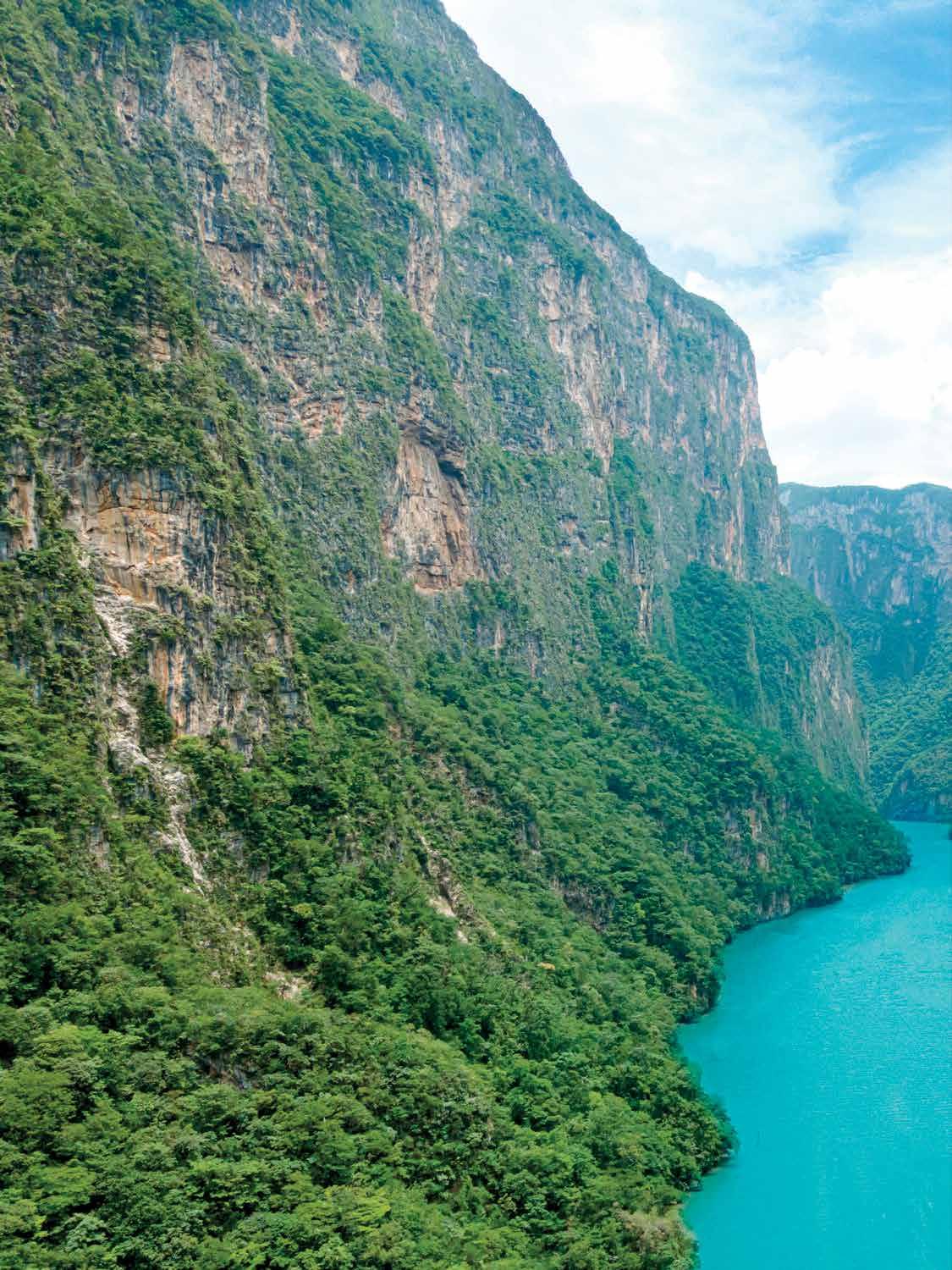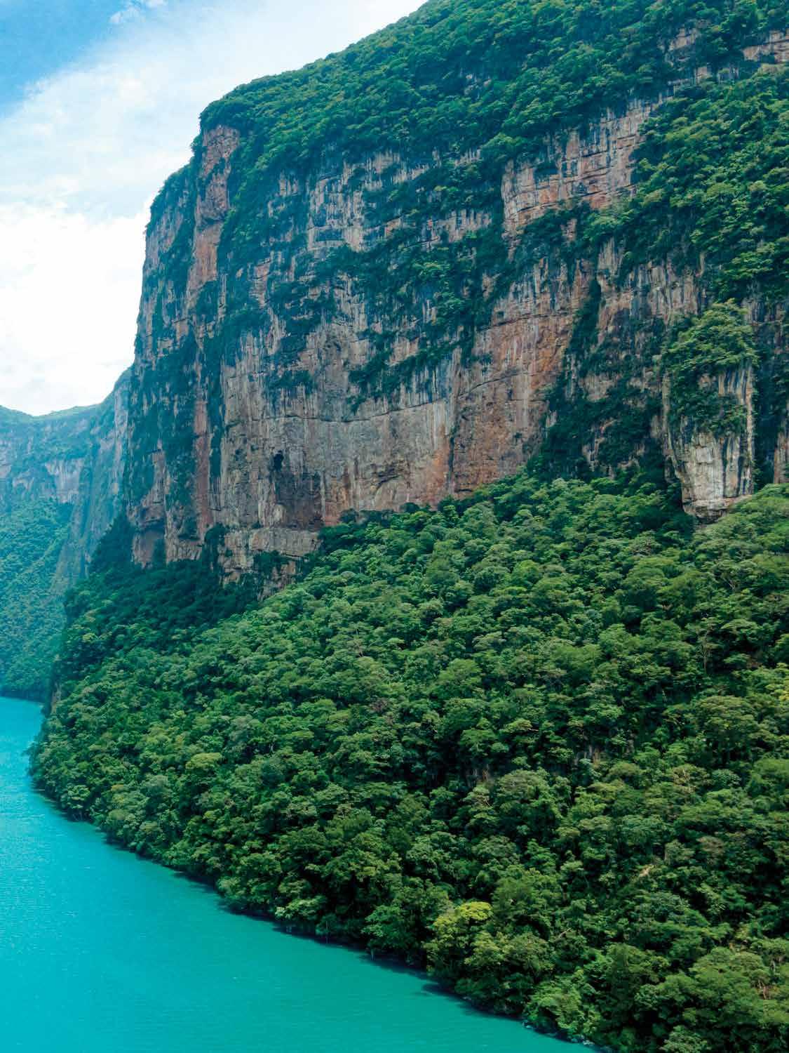 A menos de 100 kilómetros de San Cristóbal de las Casas y en las inmediaciones de Tuxtla Gutiérrez, las monumentales paredes de roca que se levantan a ambos costados del río Grijalva revelan la magnífica escala que caracteriza a la naturaleza chiapaneca.