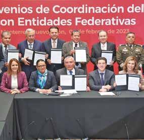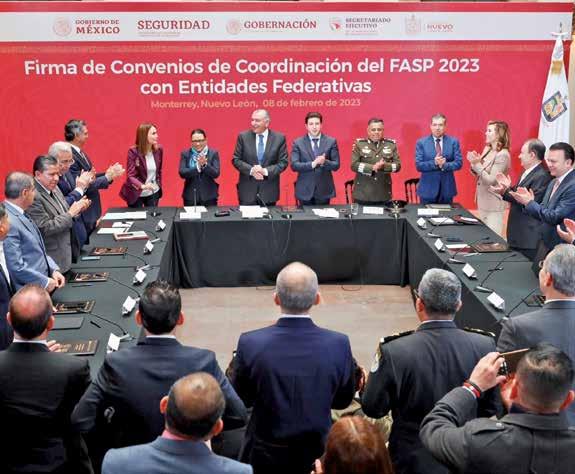 › La secretaria de Seguridad, Rosa Icela Rodríguez, y el titular de la Segob, Adán Augusto López, fueron protagonistas ayer en Monterrey, en la reunión con los gobernadores del norte del país. Además de informarles que aumentará 10% el Fondo de Aportaciones para la Seguridad Pública, se congratularon por la coordinación entre los tres niveles de gobierno. Ella les recordó que “en México no estamos condenados a la guerra, estamos destinados a la paz”.