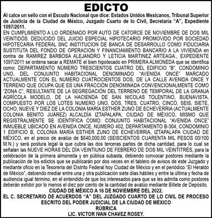 Diario El Heraldo de México. Editor responsable: Alfredo González Castro. Número de Certificado de Reserva otorgado por el Instituto Nacional del Derecho de Autor 04-2009-060419022100-101. Número de Certificado de Licitud de título y Contenido No.16921. Domicilio de la Publicación: Paseo de la Reforma No. 250, Piso 24, Colonia Juárez, Del. Cuauhtémoc, C.P. 06600, Ciudad de México. Imprenta: Impreso en Talleres de La Crónica Diaria , S.A. de C. V. Calzada Azcapotzalco La Villa No. 160 Barrio San Marcos , Alcaldia Azcapotzalco, CP 02020. Publicación Diaria. Todos los derechos están reservados. Queda estrictamente prohibida la reproducción total o parcial de los contenidos e imágenes de esta publicación sin previa autorización de El Heraldo de México. El contenido de los artículos es responsabilidad exclusiva de los autores.