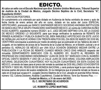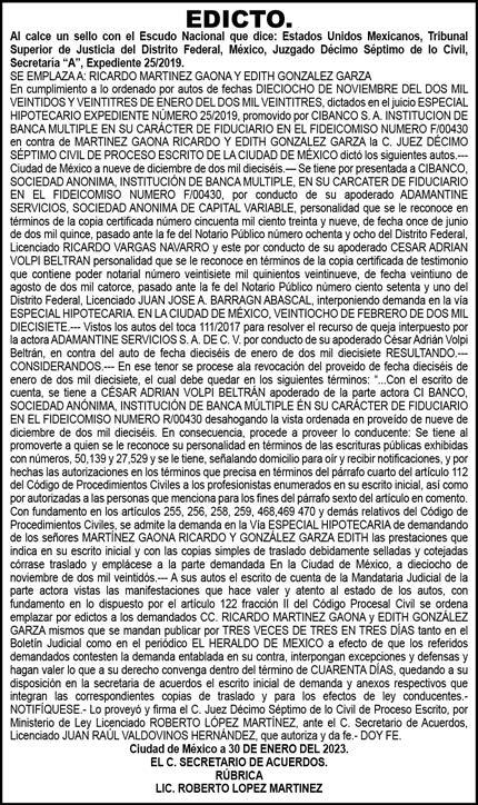 Diario El Heraldo de México. Editor responsable: Alfredo González Castro. Número de Certificado de Reserva otorgado por el Instituto Nacional del Derecho de Autor 04-2009-060419022100-101. Número de Certificado de Licitud de título y Contenido No.16921. Domicilio de la Publicación: Paseo de la Reforma No. 250, Piso 24, Colonia Juárez, Del. Cuauhtémoc, C.P. 06600, Ciudad de México. Imprenta: Impreso en Talleres de La Crónica Diaria , S.A. de C. V. Calzada Azcapotzalco La Villa No. 160 , Barrio San Marcos Alcaldia Azcapotzalco, CP 02020. Publicación Diaria. Todos los derechos están reservados. Queda estrictamente prohibida la reproducción total o parcial de los contenidos e imágenes de esta publicación sin previa autorización de El Heraldo de México. El contenido de los artículos es responsabilidad exclusiva de los autores.