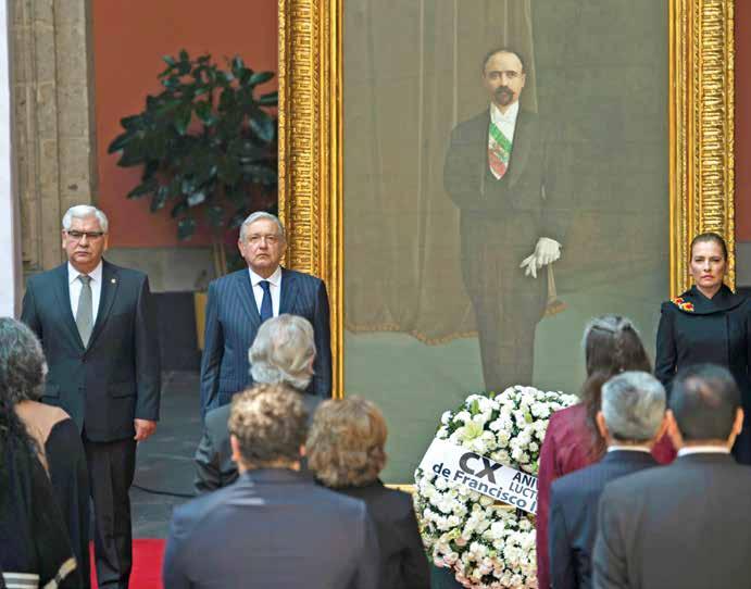 ● El presidente Andrés Manuel López Obrador presidió la ceremonia por el 110 Aniversario Luctuoso de Francisco I. Madero, en Palacio Nacional. Se depositó una ofrenda floral y montaron una guardia de honor. NOEMÍ GUTIÉRREZ