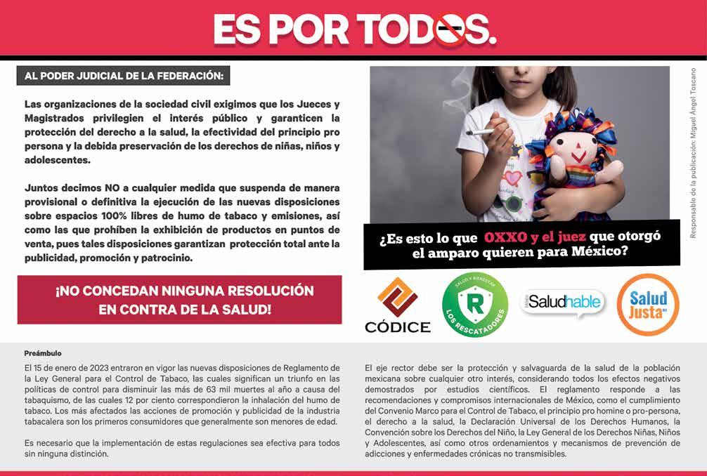 CORRER CON CORAZÓNEL POR YAZMÍN ZARAGOZA/P18 EL SERVICIO DE ADMINISTRACIÓN TRIBUTARIA (SAT) CONTABILIZA, EN UN REPORTE, QUE FUERON INGRESADOS AL MERCADO, DE MANERA ILEGÍTIMA, EL AÑO PASADO #COMBUSTIBLES CIRCULAN 66 MILLONES DE BARRILES ILEGALES #TALLERTAPATÍO La cuna de Pinocho EL CHUCHO, P20 #AFECTAA LABANCA acumula deuda por 79 MMDP UNIFIN #MÓNICARODRÍGUEZ #ORGULLO NACIONAL Con paso FIRME LLENAN MILES EL ZÓCALO EN DEFENSA DEL INE P6 #CONTRAPLANB AÑO. 6 / NO. 2086 / LUNES 27 DE FEBRERO DE 2023 FOTO: MEXSPORT FOTO: GUILLERMO O'GAM FOTO: ESPECIAL FOTO: ESPECIAL
