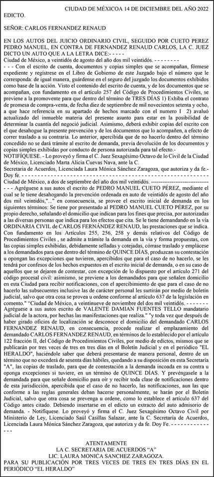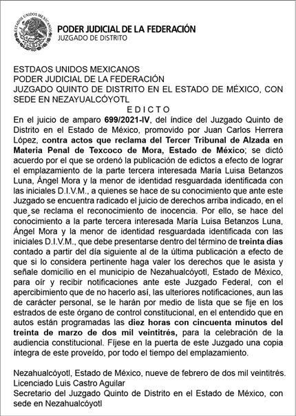 Diario El Heraldo de México. Editor responsable: Alfredo González Castro. Número de Certificado de Reserva otorgado por el Instituto Nacional del Derecho de Autor 04-2009-060419022100-101. Número de Certificado de Licitud de título y Contenido No.16921. Domicilio de la Publicación: Paseo de la Reforma No. 250, Piso 24, Colonia Juárez, Del. Cuauhtémoc, C.P. 06600, Ciudad de México. Imprenta: Impreso en Talleres de La Crónica Diaria , S.A. de C. V. Calzada Azcapotzalco La Villa No. 160 , Barrio San Marcos Alcaldia Azcapotzalco, CP 02020. Publicación Diaria. Todos los derechos están reservados. Queda estrictamente prohibida la reproducción total o parcial de los contenidos e imágenes de esta publicación sin previa autorización de El Heraldo de México. El contenido de los artículos es responsabilidad exclusiva de los autores.