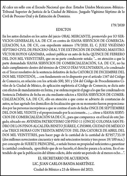 Diario El Heraldo de México. Editor responsable: Alfredo González Castro. Número de Certificado de Reserva otorgado por el Instituto Nacional del Derecho de Autor 04-2009-060419022100-101. Número de Certificado de Licitud de título y Contenido No.16921. Domicilio de la Publicación: Paseo de la Reforma No. 250, Piso 24, Colonia Juárez, Del. Cuauhtémoc, C.P. 06600, Ciudad de México. Imprenta: Impreso en Talleres de La Crónica Diaria , S.A. de C. V. Calzada Azcapotzalco La Villa No. 160 Barrio San Marcos , Alcaldia Azcapotzalco, CP 02020. Publicación Diaria. Todos los derechos están reservados. Queda estrictamente prohibida la reproducción total o parcial de los contenidos e imágenes de esta publicación sin previa autorización de El Heraldo de México. El contenido de los artículos es responsabilidad exclusiva de los autores.