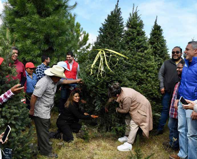 ● La venta de árboles de Navidad, en la alcaldía Tlalpan, inició con el corte de un oyamel, de 2.5 metros de altura , por parte de la alcaldesa Alfa González. Se contempla que se oferten alrededor de 14 mil 800 árboles. CARLOS NAVARRO