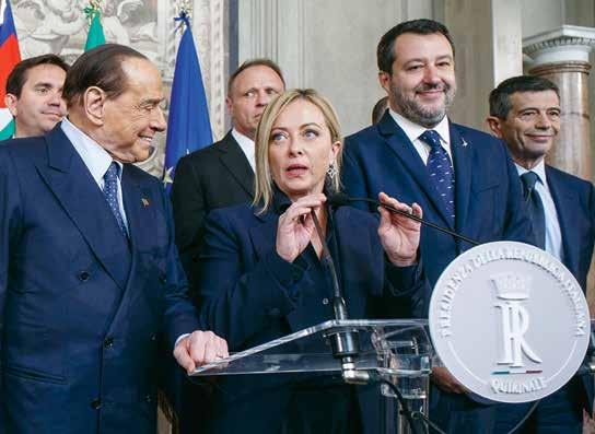 la orden de formar el nuevo go bierno”, declaró Meloni, flan queada por sus dos principales —y en ocasiones problemáti cos— aliados de derechas: Mat teo Salvini y el ex primer minis tro Silvio Berlusconi. “Estamos listos y queremos avanzar en el menor tiempo posible”, dijo
